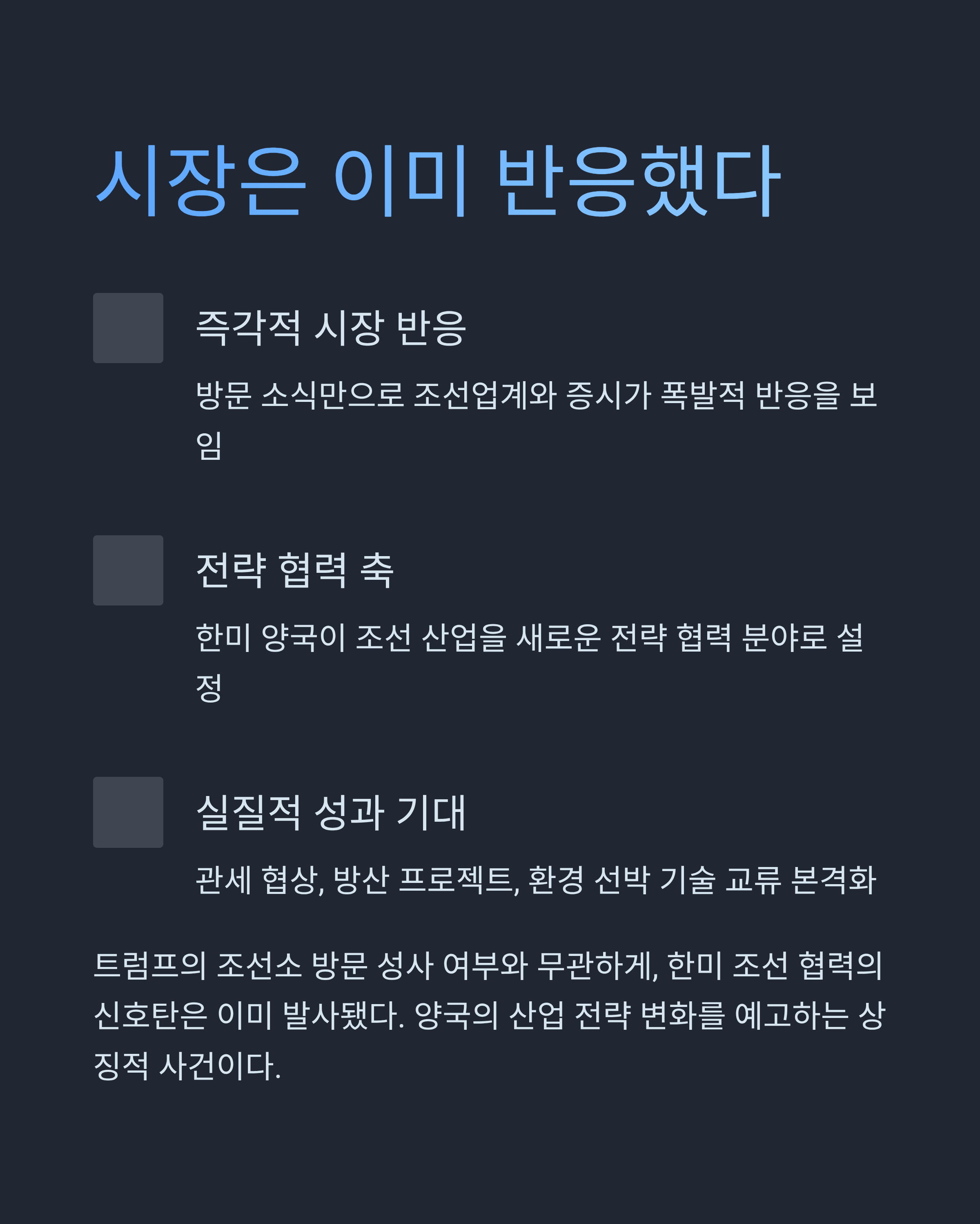 트럼프 대통령 방한과 조선소 방문설, 시장을 흔들다